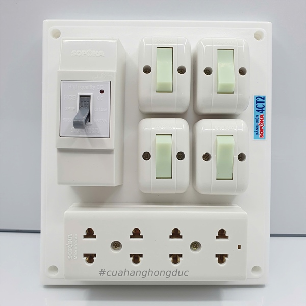 Mua sỉ Bảng điện gồm 4 công tắc 3 lỗ cắm 1 CB cóc 4CT2 SOPOKA tại Website hoặc Inbox Zalo 0962.431.134.
